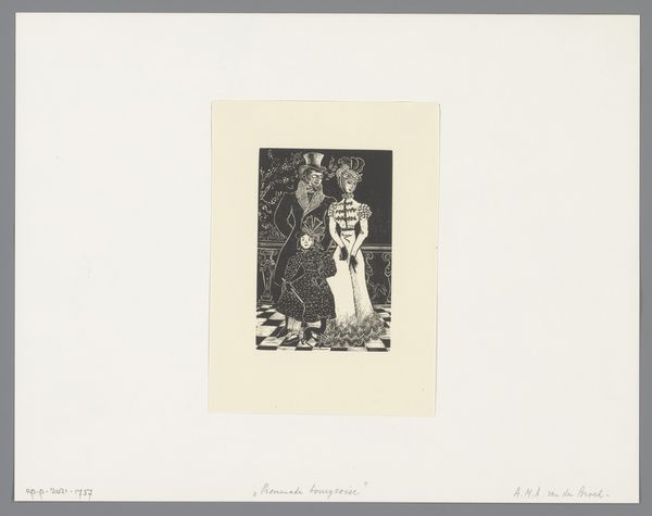 Editor: We are looking at "Liggende vrouw" (Reclining Woman) by Willem de Zwart, likely created around 1886. It’s an etching, printed in ink on paper. The subdued palette creates such an intimate atmosphere. What do you notice when you look at this artwork? Curator: The composition is particularly interesting. Observe how the artist uses the horizontal orientation of the figure to create a sense of repose and stillness. Note also how the foreground texture contrasts with the smooth background. Editor: Yes, there are definite sharp contrasts in texture here. The lines around her face and dress have clear direction and focus, versus the backdrop which fades into shadow. I also noticed what seems to be the suggestion of a face near a window. Is that a trick of the eye or something else entirely? Curator: Precisely. The darker tonalities near the back draw the eye to that possible visage. Is this an external force, a specter overlooking the composition from on high, or does it exist simply to drive the viewer's attention toward the resting subject in the light? Editor: I see! That secondary, shadowy figure creates tension, almost disrupting her serene state, don’t you think? But focusing on line and composition makes that tension deliberate. The contrasts of light and shadow definitely speak volumes. Curator: Exactly. The strategic utilization of contrast is more than representational. The visual grammar serves an expressive end. One could go even further in using structuralist methodology to create meaning and derive greater import. Editor: This etching offers more than initially meets the eye, that’s for sure. I'll definitely have to work on decoding those strategic uses of contrast and texture in other artworks too! Curator: Indeed, you’ll find that applying a keen eye to the details yields endless layers of meaning.
