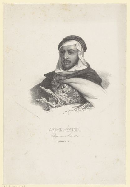 Carel Frederik Curtenius Bentinck created this print, titled "Oosterse edelman met dolk" or "Eastern nobleman with dagger" around the 1840s, during a time when the Netherlands had extensive colonial holdings in the East. Bentinck, a white European artist, painted this image of a man of color, an oriental nobleman, draped in what Westerners considered to be 'Eastern' garb, complete with dagger. Bentinck likely never encountered someone from the East, and thus, the man is depicted through the lens of European fantasy. The work touches on the politics of representation inherent in colonial encounters. It invites us to reflect on how cultural narratives are constructed and how they perpetuate or challenge societal power dynamics. What does it mean to depict an 'Eastern' nobleman through a European gaze? What stories does the selection of such a subject tell about the relationship between colonizer and colonized? Bentinck's piece is not merely an artistic portrayal, but also a historical document that encapsulates the complex interplay between identity, representation, and cultural exchange.