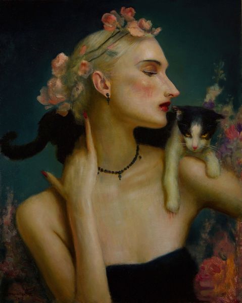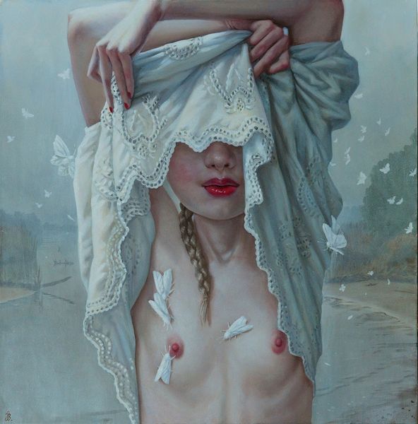 Curator: Jana Brike created this captivating oil painting, "The Bathing of the Vestals," in 2015. Editor: The pallid figures almost seem to melt into the silvery light. It’s both sensuous and spectral, the women exuding this eerie fragility. Curator: Brike often employs a romantic, figurative style with influences from contemporary art. Here, we see it used to portray, what seems like, a moment of intense intimacy. The title invites considerations of female agency and autonomy. The Vestals were, of course, priestesses. Editor: Exactly! It's like Brike is appropriating and re-imagining the roles of these historical women, liberating them. I love how she subverts the expected narrative, inviting us to examine the themes of sexuality and self-discovery within a feminist context. There’s something radical in this vulnerability. Curator: And how does the seascape figure, literally, in your read of this picture? Is it about some sort of immersion, psychological, even spiritual, or the breaking of some kind of social stricture? Editor: The seascape acts as a liminal space, a backdrop to this exploration. The sea always symbolizes freedom, purification, the subconscious—elements aligning perfectly with the themes present in this painting. It emphasizes their defiance and their embracing of the natural world as a source of power. Curator: True. The fact that they’re not *actually* bathing but rather poised at the shoreline amplifies this sense of becoming. This aligns with our understanding of visual culture as it reflects power and ideology, as women often figure, as we know, either absent from, or as marginal to the stage of socio-historical agency. The painting also brings the viewer into question. We have this picture; how is this information, if it is information at all, doing the work? Editor: Brike, through the languid gesture, compels us to look into the nuances of the intimate moment and, at the same time, the relationship that ties to the subjects' interior states, reflecting, ultimately, back at us. That the gaze is mostly averted makes us more interested. Curator: I'm leaving this with more questions than answers, that's for sure! Thanks for the exchange. Editor: My pleasure. These subtle subversions make it memorable.