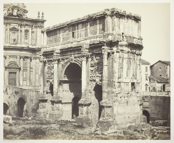 Editor: So, this is Francis Frith's "The Circular Temple, Baalbec," taken in 1857, a gelatin-silver print. I'm immediately struck by the almost romantic decay of the architecture – this once grand temple, now softened by time and nature. What does this image communicate to you? Curator: It’s a fascinating image, especially when we consider its historical context. Frith was part of a wave of photographers who documented the Middle East for a European audience, reflecting the era's fascination with the "Orient". How do you think images like this played a role in shaping European perceptions of these regions? Editor: That’s a great question. I guess these photographs, while attempting to be documentary, inevitably brought in a Western perspective and contributed to a specific narrative? Curator: Exactly. Consider the power dynamics at play. The West had the technological capacity to capture and disseminate these images. Who had the power to tell the story of Baalbek? What choices did Frith make in composing this photograph – the angle, the light – that may contribute to a specific reading? Was he documenting or was he performing for a Western audience's established expectation of what "ancient ruins" are? Editor: I hadn't thought about it that way, but the composition *does* seem carefully crafted. Almost as if he’s staged it to evoke a sense of romantic ruin for viewers back in Europe. Curator: Precisely. And thinking about where this print resides now, at the Art Institute of Chicago, do you think its meaning changes again for a contemporary American audience? Editor: Absolutely, I see how viewing it now prompts me to be much more aware of those original biases and assumptions and even Western imperial ambitions. Thanks, this gives me so much to consider! Curator: It's important to question the public role of such imagery and continue the dialogue. We're really unpacking how history shapes not just art, but our very interpretation of it.