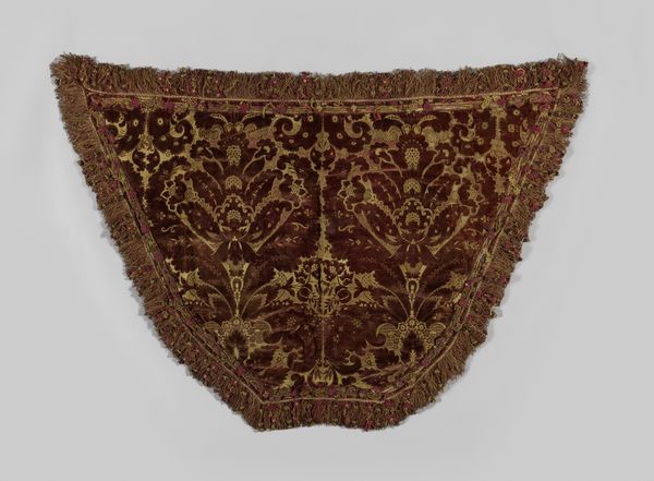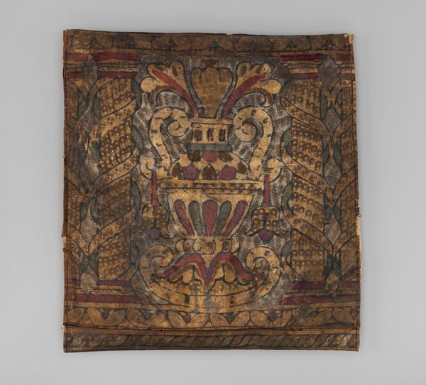 Curator: Immediately, I am struck by the textural complexity. You can almost feel the age in it. Editor: Indeed. Let's delve into this piece, identified as a "Fragment zijdeweefsel," a silk weave fragment, created sometime between 1200 and 1910 by an anonymous hand. Curator: The weaving itself speaks volumes. The regularity of the pattern hints at established looms and techniques. It’s an intricate design, yet executed with what looks like precision, suggesting perhaps a workshop environment, or at least a skilled artisan at work. Editor: Precisely. Note the materials. We have silk, likely traded across significant distances, indicating a web of economic and social exchanges. The pattern itself – geometric but also vaguely floral – suggests a visual vocabulary embedded within the culture of its creation. The use of weaving in itself—consider the physical demands and skill required to produce these textiles. It transcends mere decoration. Curator: Agreed. Looking closer, there's a certain dissonance. The patterns appear stylized, even constrained, yet they attempt to mimic organic forms. It is not mimetic, though; rather, symbolic. The motifs – these half-floral, half-geometric structures – possess a formal elegance and create multiple, balanced lines that converge to a stable sense of the grid. Editor: And that grid provides structure—but it also dictated the process. One has to imagine the loom itself: what limitations and possibilities did that present to the weaver? How might the act of repeating certain gestures, hour after hour, day after day, shaped the intention, shaped even the final design of the fragment? Curator: You are proposing that constraints drive the artwork itself? It is a useful theory. One cannot dismiss the visual weight of the colors as well. While time may have altered the shades, the use of a darker, faded blue/grey alongside that pale tan grounds the structure. The muted palette, with its quiet, tonal elegance is simply astonishing. Editor: Absolutely. What stories this piece could tell about production, the person at the loom, and consumption! From the materials to its execution, the whole reveals much. Curator: The way that geometric formalism meets organic expression; fascinating to me. It elevates it, perhaps to a status beyond that of “craft” alone. Editor: I agree that the work’s artistic components represent and signify not just form but all those things involved in that form’s creation, giving new voice to old methods.