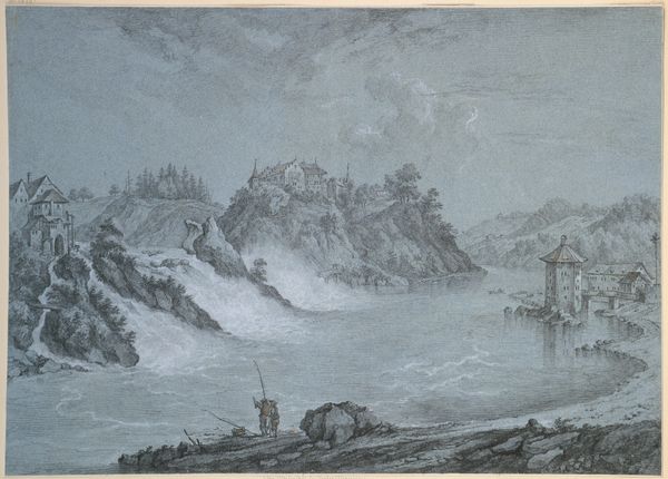 This small watercolor painting, Falls of St. Anthony, was made by Seth Eastman, who served as a Captain in the US Army in the mid-19th century. Eastman's choice of watercolor, a portable and relatively inexpensive medium, speaks to his position as a military man documenting the American landscape. The transparent washes of color allowed him to quickly capture the scene's atmospheric effects, like the mist rising from the falls and the vastness of the sky. Look closely and you will see the artist's hand in the small, precise brushstrokes. The texture of the paper also plays a role, adding subtle variations to the color and contributing to the overall sense of immediacy. Eastman’s position as an army officer, combined with his artistic skill, gives this work a unique historical weight, offering a glimpse into a time of expansion, conflict, and transformation of the American landscape. It is an act of recording, certainly, but also appropriation. By focusing on the materials and the making of this work, we can gain a deeper understanding of its historical and social context, challenging traditional distinctions between documentary and fine art.
