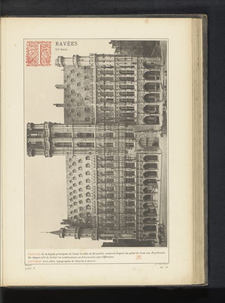 Curator: So, what jumps out at you about this albumen print from before 1880 entitled "Gezicht op huis Curtius in Luik, België," or View of the Curtius House in Liege, Belgium? Editor: The weight of it, literally! That hulking building almost breaks the spine of the book. It's austere, powerful… and perhaps a little intimidating. A formidable pile of bricks and windows, a silent witness to the comings and goings of… well, who lived there? Curator: Good question! It was home to Jean Curtius, a wealthy arms manufacturer in the 16th century. And while it might seem intimidating, the Neoclassical elements, those clean lines and symmetrical facades, speak to a desire for order and rationality, very fashionable at the time. Editor: Ah, see, that's where I find it a little unsettling. This 'order' feels imposed. It lacks the warmth or individuality you see in buildings grown organically. All those windows staring out... it’s almost like a panopticon of the past. Curator: That's a fascinating interpretation! The sheer number of windows could also symbolize a reaching out to the world, a desire for knowledge and connection, typical for the period. Also, consider albumen printing itself: the tones, sepia, browns are so rich. Think of the cultural symbolism. Editor: True, true. And maybe that's why it's aged so gracefully. You know how some family portraits of your great, great grandparents evoke a deep respect or fear? Curator: It is aged beautifully and maybe a bit uncanny, just as a haunted building should! Do you also see this book layout and what might signify? Editor: Absolutely! The fact that it’s displayed within the leaves of a book format feels almost ceremonial, it emphasizes a reverence for history, framing the image as a precious, almost sacred document, as if we were witnessing its initial unveiling. I get a feel for timeless memory, as though it wants to be read instead of gazed at. Curator: Exactly! It gives this picture the opportunity to share stories from ages past with the future—the picture almost exists out of time and memory—I love that aspect of it. Well, I think we've unearthed some compelling layers in this cityscape today.