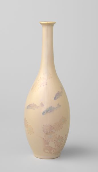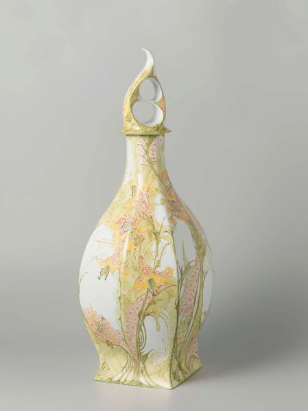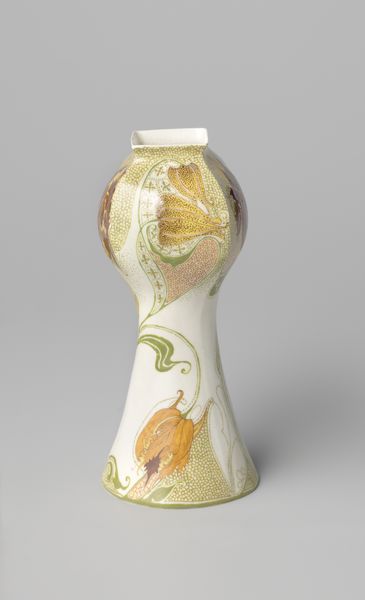 Editor: This ceramic vase, "Vaas, veelkleurig beschilderd met bloemen," was crafted around 1910 by the N.V. Haagsche Plateelfabriek Rozenburg, and it's simply radiant! The floral design is really arresting. What do you see in this piece? Curator: The Art Nouveau style speaks volumes about its era, a time of questioning established social structures through the lens of aesthetics. Consider the historical context: women were fighting for suffrage, and industrialization was rapidly changing society. Editor: So, how does this vase relate to that? Curator: Art Nouveau often used organic, flowing forms as a visual rebellion against industrial standardization and Victorian constraints. The vase's floral decoration might symbolize a yearning for the natural world but also the burgeoning concept of 'nature' representing idealized feminine characteristics. Editor: Interesting, like a coded language. Curator: Precisely. The vase, through its form and decoration, becomes a quiet manifesto, subverting dominant patriarchal structures. Think about the women artisans and designers who might have been involved in its creation. Their voices, often unheard, are embedded within the object itself. Editor: I never considered it from that angle. I was only looking at it through a formal lens. Curator: The object’s elegance is undeniable. But if we ask questions of gender, labor and environment, we start to build a deeper understanding. Consider who benefited from this creation and what they sacrificed in its making? Editor: So, art isn’t just about what’s on the surface, but about the conversations it can start. Curator: Absolutely. Examining art in relation to history provides powerful means for decolonizing perspectives, even when viewing something seemingly innocuous like a vase. Editor: Thank you for opening my eyes. It’s given me a lot to consider moving forward!
