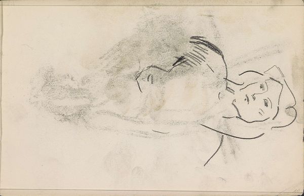 Editor: Here we have Isaac Israels’ "Vrouwenhoofd," a pen and ink drawing on paper, created sometime between 1875 and 1934. It looks like a quick sketch, very minimal. What's your take on it? Curator: From a materialist perspective, the immediacy of ink on paper is striking. Notice how Israels hasn't obscured the process. The visible, somewhat frantic lines speak volumes. We aren't seeing a polished final product but a record of the artist's hand, his labor, in real-time. Editor: So, it’s about the act of creation itself? Curator: Precisely. Consider the accessibility of these materials – ink and paper. They were relatively inexpensive, placing art production within reach of a broader segment of society. How might this affect Israels' approach to subject matter? Was he trying to appeal to specific societal classes, or maybe experiment freely because of this cheap media? Editor: I hadn't considered the economic aspect of art supplies. I guess I usually focus on the final image. But you’re saying that understanding the means of production – the materials, the labor involved – that's key? Curator: Absolutely. By examining the “how” of its making, we move beyond surface aesthetics and uncover the social and even political dimensions embedded within the artwork. For example, mass production of paper democratized art-making to a degree. Did this impact traditional ideas around "high art?” Editor: That makes a lot of sense. I always thought of drawings as just preliminary sketches, not really “art”. But I guess by focusing on the process and materials, it validates it, because that means even preliminary steps involved skilled labor and material reality. Curator: Exactly. It pushes us to reconsider established hierarchies. Materiality matters. Editor: I see, thank you for shifting my point of view; I am off to consider my materials more!