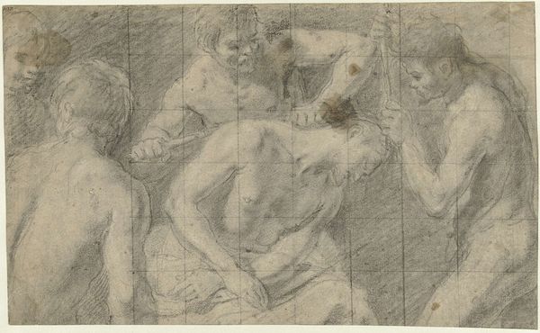 This drawing, titled "Two Reclining Figures," employs charcoal to capture a scene of ambiguous tenderness or sorrow. The artist, whose identity remains unknown, uses stark contrasts in tone, and soft smudging to render two figures intertwined in what appears to be either embrace or distress. The composition is intriguing, with the darker tones surrounding the pale figures, pushing them to the forefront, and creating a focal point for the viewer's gaze. Note how the artist uses shadow and light to define the musculature and drapery. This technique not only adds depth, but also invites questions about how identity is formed through light and shadow. The drawing does not reveal all; instead, it prompts us to consider the symbolic structures through which we view intimacy, vulnerability, and perhaps even conflict. It challenges us to look beyond immediate appearances. Instead, it invites an exploration of complex human emotions.