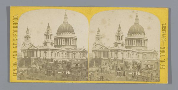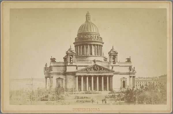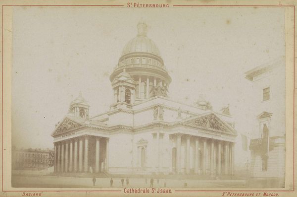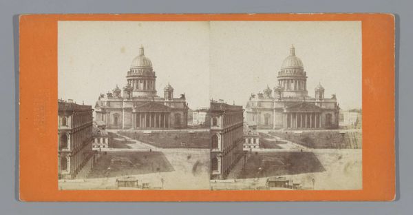 Editor: This is a gelatin silver print from circa 1860 to 1880 titled "View of St. Isaac's Cathedral in St. Petersburg" by Alfred Lorens. It looks like a stereoscopic image, like something you'd view with special glasses. The composition, the sheer repetition of the cathedral, makes me think about mass production, even though it’s a photograph of a unique structure. What do you see in this piece? Curator: This photograph offers a fascinating glimpse into the social and political context of 19th-century Russia. Consider the act of photographing the cathedral, particularly producing it as a stereoscopic image. Who was the intended audience? Editor: Presumably tourists, or people who couldn’t travel to Saint Petersburg themselves? Curator: Exactly. This image becomes a commodity, a way to experience a place through visual consumption. Think about what the cathedral itself represents. St. Isaac's was a potent symbol of imperial power, directly linked to the Romanov dynasty and its ambition to project an image of Russia as a major European power, and even a "Third Rome" by co-opting Byzantine forms. The very act of photographing and disseminating its image solidifies that message. Editor: So it's not just a picture; it's about power and how power is visually communicated? Curator: Precisely. The photograph also reflects the rising middle class, increasingly able to afford such mementos of travel and culture. What socio-political narrative does that create? Also, given the context of "Orientalism", is there something happening here through its inverse, where Russia positions itself in opposition to other non-Western geographies by highlighting its imperial grandeur and architecture? Editor: Wow, I hadn't thought about the implications of mass-producing and marketing such an image like that. Thanks for providing context. Curator: Understanding photography through a historical and cultural lens adds many more layers to the experience. Now, let’s consider other pieces through this expanded scope.