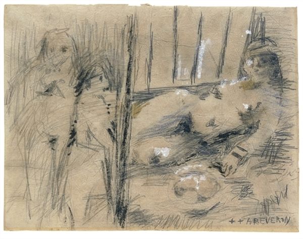 Editor: Here we have Philipp Rumpf’s "Zwei Frauen im Freien lagernd," which translates to "Two Women Reclining Outdoors". The artwork's date is unknown, but the piece is made of ink and pencil. It feels so informal and fleeting; a snapshot of a relaxed moment. How would you interpret a seemingly casual drawing like this? Curator: Well, seeing this, I immediately consider the social context of leisure in the artist’s time. Public parks and outdoor spaces became increasingly accessible during the 19th century for all social classes, although often under strict social regulation, shaping interactions and visual encounters between different strata of society. Could this drawing then reflect or critique social barriers in a space presumably available for all? Editor: That's interesting! I hadn't thought of it as commenting on access, more that it felt intimate, as if the artist had captured his family informally. Curator: That might very well be too. Family relations became a frequent theme in art. How might this depiction contrast, for instance, with more staged, formal family portraits common at the time? Consider the potential for a drawing like this to show real connections rather than idealized images. Editor: So you think it is consciously presenting a different narrative, something less…official? The technique definitely lends itself to that reading, especially the use of a light, free line! Curator: Exactly. The informality, in turn, becomes a powerful statement, as such a choice reveals the cultural assumptions and expectations that it intentionally defies. What kind of social value did intimacy begin to obtain as photography became prominent? Did such informal drawings allow to capture an “aura” of everyday life that official representation failed to grasp? Editor: That’s a great way to think about it – it gives the drawing so much more depth than just a simple scene. I appreciate the shift in thinking about not only *what* is depicted, but also *why* this scene is portrayed this way in relation to its society. Curator: It works the other way round, as well. Paying attention to its artistic properties enhances how we perceive its role in social dynamics!