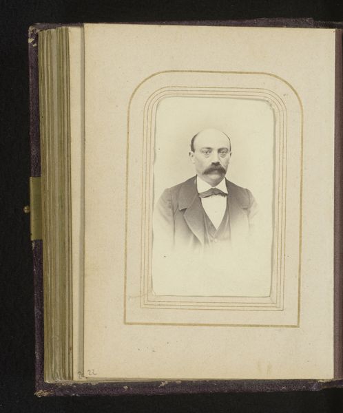 Editor: So this is "Portret van Lucas Jonker," a photograph probably taken sometime between 1865 and 1908 by Wegner & Mottu. It’s striking how… faint it is, almost like a ghost. What can we read from an image like this, Curator? Curator: The faded quality of the photograph does evoke a sense of memory, doesn’t it? Consider the portrait itself: the sitter, formally posed, beard neatly trimmed, eyes holding a steady gaze. In its time, the photographic portrait offered a new way of preserving likeness and status. Do you see the careful balance between asserting identity and conforming to the era's expectations of respectability? Editor: I do. It feels like a carefully constructed persona. Almost a performance for the camera. But given that photographs were somewhat novel, did that influence the presentation? Curator: Precisely! Early photography inherited portraiture's symbolic weight. Every detail – clothing, posture, expression – became a deliberate marker of identity, profession, and social standing. Look closely at his neutral expression. Does it betray any clues to his personality, or is it a mask carefully constructed for posterity? The absence of a direct narrative allows layers of interpretations to form. The photograph can thus speak about more than Lucas Jonker, can't it? Editor: Absolutely. It reflects broader societal values, anxieties even, around identity in a rapidly changing world. Thank you! Curator: And thank you, it is in considering the ephemeral, how identity, portraiture and photography meet that we can appreciate an aesthetic artifact such as this.