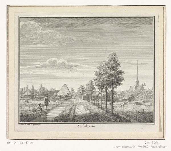 This print, "Gezicht in de Nassau Odijklaan te Zeist", was made by Hendrik Spilman sometime before 1784 using etching and engraving techniques. The image is defined by the precise, linear qualities inherent to these processes. Notice how Spilman uses the crisp lines to depict the ordered rows of trees, emphasizing the constructed nature of the landscape. Etching and engraving, while capable of great detail, demand a level of planning and control, paralleling the manicured vista itself. Consider the social context: prints like these were products of a growing market for images, satisfying a desire for both decoration and documentation. Spilman's skilled labor, using specialized tools to create multiple identical impressions, speaks to the increasing commodification of art during this period. This wasn't just a picture, it was a product of its time, reflecting emerging economies of labor and leisure. Understanding the making and materials allows us to see beyond the picturesque scene, revealing the intricate relationship between art, labor, and society in 18th-century Netherlands.