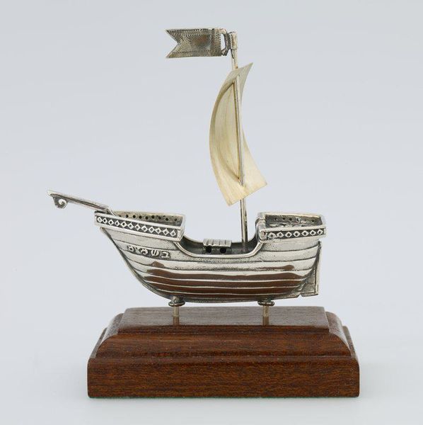 These are models of floating beacons made by Rijkswerf Rotterdam. These miniature vessels point to the larger narrative of maritime history and Dutch identity. Consider the cultural and economic importance of the sea to the Netherlands. Historically, seafaring has shaped national identity and trade, but it has also influenced naval power. This intertwining of commerce and military strength highlights the complex relationship between the Netherlands and its maritime activities. The beacons themselves were critical for navigation, thus symbolizing both guidance and control. These models, with their precise construction, speak to the labor and skill involved in shipbuilding. As such, they reflect broader themes of Dutch history. The beacons remind us of the impact of maritime activities on identity, the complexities of naval trade and power, and the value of skilled labor within Dutch society.