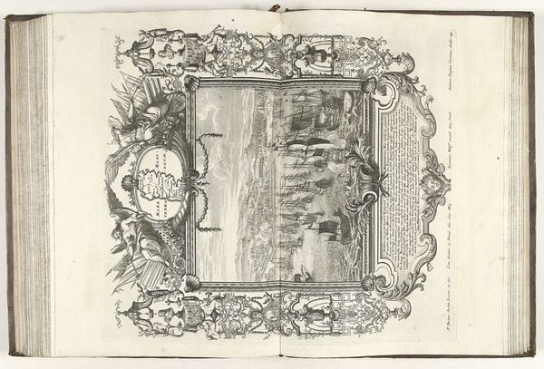 Curator: Look at the dynamism of this Baroque piece! Before us we have an engraving made between 1712 and 1715, titled "Verovering van het kasteel van Milaan, 1707" (Conquest of the Castle of Milan, 1707), created by Johann August Corvinus. The Rijksmuseum houses this ink and pen drawing. Editor: It strikes me first as quite dense; the central image, of course, depicts the castle being conquered, yet there’s this incredibly ornate frame obscuring and framing the subject all at once. A paradox. Curator: Paradox perhaps embodies much of art history, don’t you think? Think about how warfare was represented through these visual projects! Notice, in this print, how text flanks the composition, as if to legitimate a version of history, just as the inclusion of battle plans seems to validate military authority. It is history as viewed through propaganda. Editor: Absolutely, there is no doubt in my mind about it. So, how would one unpack this piece through the lens of today’s socio-political frameworks? It raises questions of colonial legacies, the power dynamics embedded in the depiction of war. Curator: Consider, also, the almost absurd level of detail applied to rendering military weaponry, uniforms, etc. We might interpret such ornamentation in conjunction with an analysis of the visual construction of masculine authority and martial prowess. One could easily situate this imagery within contemporary dialogues on the weaponization of historical memory. Editor: It is intriguing how these battle scenes, often glorifying violence, functioned as both documentation and justification for those exercising power. This calls for analysis from feminist theories and cultural studies, considering gendered power roles during wartime, who dictates which lives matter and what their social function might be. Curator: Precisely. By placing this Baroque print within these contemporary perspectives, we illuminate its continuing relevance and impact, enriching dialogues about representation, war, and identity. Editor: Agreed, this image, dense with details of conquest, continues to inspire conversation—across history, media studies, and critical cultural inquiry. I wonder what kind of similar images will inspire our conversations 300 years from now?