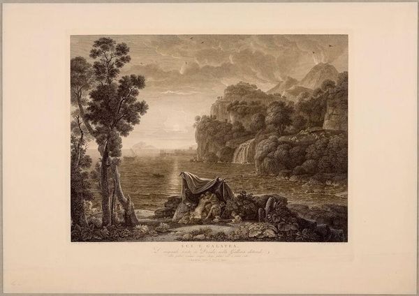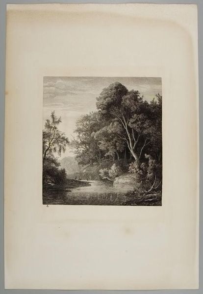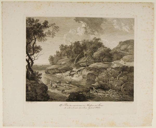 Editor: Here we see "Crossing the Brook" by William Richardson. The engraving technique is quite impressive, creating such detail. What materials would have been used in its creation? Curator: The copper plate and engraving tools are key. Consider the labor involved in etching this level of detail. This wasn't simply about aesthetics; it was a process deeply tied to the economic realities of print production and distribution at the time. Editor: So, the means of production influenced the art itself? Curator: Absolutely. The accessibility of prints allowed wider consumption of images, impacting social values and knowledge dissemination. The subject matter chosen, pastoral scenes, reflects the market for such imagery. Editor: That’s an interesting perspective. It makes me think about how the process of creating influenced who saw it and what they thought. Curator: Exactly! Looking at art through a material lens gives us a much richer understanding of its place in history.