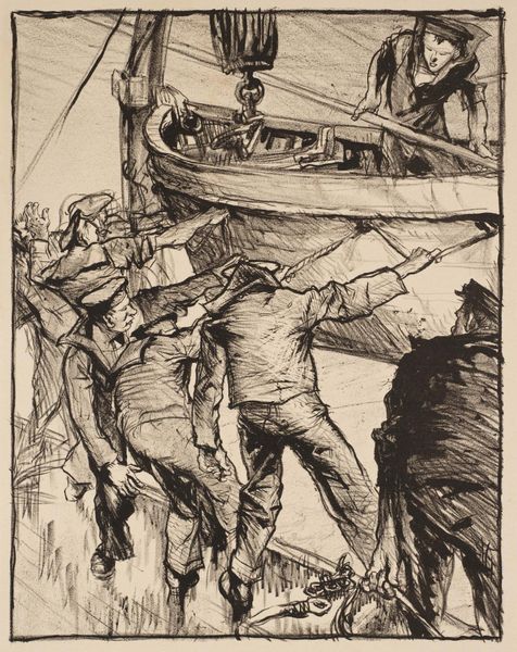 Muirhead Bone made this print of Piccadilly Circus using etching, a process involving acid and metal. The image shows workers tearing up the street, likely with jackhammers – a relatively new technology at the time. Look at the way Bone uses stark lines to depict the scene. The roughness of the etching technique mirrors the gritty reality of urban construction. Notice the contrast between the laborers in the foreground and the onlookers in the background, a division emphasizing class differences. The very act of demolishing concrete speaks volumes about progress and the relentless reshaping of our environment. Bone highlights the physical labor involved in building and rebuilding the modern city. It's easy to overlook the sheer effort required to create the infrastructure we take for granted. This artwork serves as a potent reminder of the human cost behind urban development, challenging any neat distinction between fine art and social commentary.
