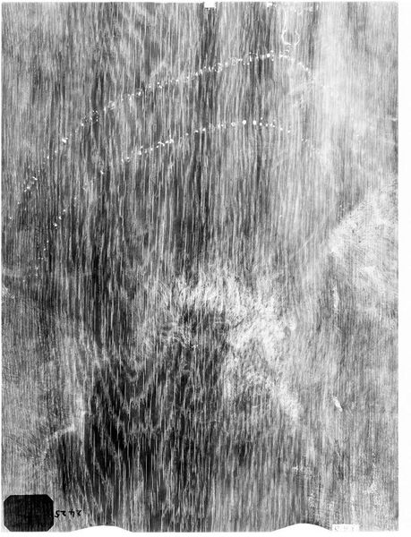 Curator: This is an X-radiograph of Rembrandt van Rijn's "Landscape," residing here at the Harvard Art Museums. It strips away the familiar facade of the finished painting. Editor: My first impression is of ghostly layers, like palimpsests of creation and decision-making. It reveals what's underneath, the bones of the image. Curator: Precisely. Imaging technologies allow us to question the canon itself. How do Rembrandt's choices reflect the societal constraints and artistic expectations of his time? What narratives were suppressed? Editor: And materially, we see the traces of the artist's hand, the build-up of paint, the very substance that conveys meaning and now, through radiography, becomes data, information. It is about the materials themselves as storytellers. Curator: Absolutely, these imaging techniques challenge traditional notions of the artist's singular genius, exposing the evolution and the material processes that contribute to the final piece. Editor: It allows us to appreciate the physical labor and material choices, in addition to its historical contexts. It allows us to fully examine the artwork. Curator: A critical lens for understanding not just art history, but also its intersection with larger sociopolitical narratives. Editor: Seeing the process adds to the wonder and awe.