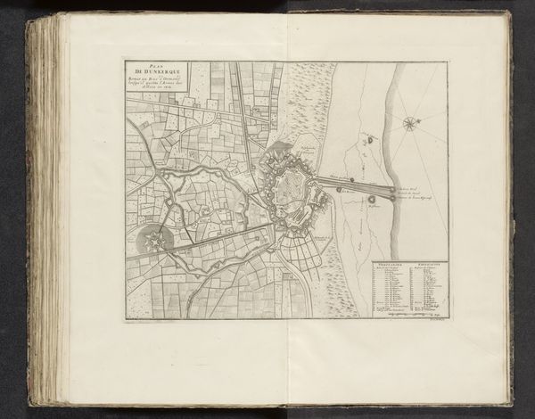 This is an anonymous 1712 drawing titled "Plattegrond van Fort Knokke" at the Rijksmuseum. Its lines are precise, geometric, and evoke a sense of order and control. The structure centers around the fort itself, its star shape rendered with meticulous accuracy. This form, repeated and mirrored, presents a visual language of defense and strategic planning. The artist uses line to demarcate space, creating a semiotic system where each shape signifies a specific function, from protective walls to open fields. The composition reveals not just a physical space but also an intellectual one, where power is mapped and controlled through representation. The stark contrast between the fort's controlled geometry and the organic shapes of the surrounding landscape highlights the tension between human order and natural form. It reflects a period where cartography was as much about claiming territory as it was about recording it.