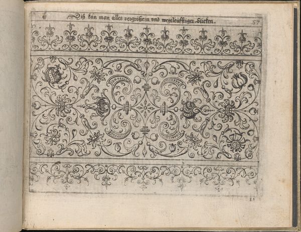 This is a page from Johann Sibmacher's "Newes Modelbuch in Kupffer," a book of models rendered in copper during the late 16th or early 17th century. Here, the floral motifs, meticulously etched, present a fascinating case study in the life of symbols. Consider the pomegranate, prominently displayed in the upper left panel. A symbol of fertility and abundance since antiquity, it appears in ancient Roman frescoes and Renaissance paintings alike. Yet, its stylized depiction here, nestled within geometric borders, speaks to a transformation. We see the raw, primal power of nature contained and refined by human intellect. The swirling acanthus leaves, framing the compositions, echo classical motifs found in ancient Greek architecture. These motifs, recurring across centuries, serve as a constant reminder of humanity’s connection to its past, and a deeper, collective memory. It is this very act of recall and reinterpretation that imbues these symbols with their enduring emotional power, engaging viewers on a deep, subconscious level. In the cyclical progression of cultural memory, the past perpetually resurfaces, each time subtly transformed, carrying echoes of its former lives.