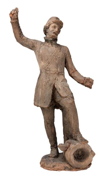 Editor: This is Julius Schultz's 1901 bronze sculpture, "The Poet Jens Baggesen," here at the SMK. The figure's pose seems… unsure, maybe a bit burdened. What can you tell me about this work? Curator: Looking at the sculpture from a materialist perspective, the very choice of bronze, and the processes involved in its creation – the casting, the tooling, the patination – speaks volumes about artistic production at the turn of the century. Bronze, a durable material, traditionally associated with commemorative statuary and the valorization of its subject through labour. Editor: How does the sculpture engage with the subject’s status as a poet, or intellectual? Curator: Well, think about it: the artist chose bronze. This dictates process, demanding specific types of skilled labor. The material becomes the message. A question we should ask ourselves is why? Baggesen had a certain social standing which allowed the sculpture to exist in the first place, what relationship did he have to the modes of bronze productions. Editor: I guess I was expecting something more overtly “poetic” or “romantic”. Curator: But consider the social implications. Schultz wasn’t just immortalizing an individual; he was engaging with contemporary social values concerning artistry, commemoration, and how status dictates labour and material usage. Was Schultz commenting on these implications? Editor: So, focusing on the material and method really opens up new interpretations, shifting away from solely the “poetic” depiction of the person. Thank you. Curator: Exactly. Examining the choices, from the bronze itself to the specific techniques, lets us decode how art acts as both a product and reflection of its society.