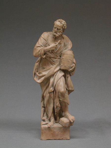 Antonio Susini crafted this bronze sculpture of Saint Matthew sometime in the late 16th or early 17th century. Susini lived during a time of religious and social upheaval, marked by the Counter-Reformation. Here, Matthew is portrayed as a thoughtful, almost melancholic figure. As one of the authors of the Gospels, he stands as a pillar of the early Church. The angel struggling beneath the weight of the book on which Matthew will write, traditionally signifies divine inspiration. Yet, this representation also speaks to the weight of religious authority and the challenges of interpreting divine will. The statue might reflect the artist’s personal negotiation between faith and the changing intellectual landscape of his time. This bronze is a study in contrasts—the solid, grounded saint versus the straining angel, the earthly versus the divine. It invites us to reflect on the burdens of faith and knowledge, and how these burdens are distributed, particularly in a society marked by hierarchy.