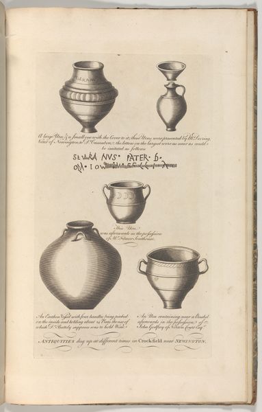 Curator: Looking at this image, I am immediately struck by its quiet formality; it reminds me of a catalog. Editor: That’s interesting because, in fact, we're observing a page from what seems to be a photographic print or collection created by Joseph Cundall, likely before 1873, entitled “Kandelaren en vazen.” The album page features meticulously arranged photographs of candelabras and vases. Curator: I wonder about the implied labor—not just the visible work in making the vases and candelabras, but the hands behind the camera and print too. The way they’re arranged has a distinctly scientific feel to me. Editor: Yes, the documentation itself holds significance. The placement feels deliberate, cataloging status objects. These aren't just photographs of items; they become evidence of societal taste and values during a specific era. Curator: It also brings up questions about accessibility; who gets to view, handle, and own such objects. The print itself probably wasn't cheap or mass-produced. This adds layers to our interpretation, reflecting social dynamics and power relations embedded within even still-life images like this one. What kind of audience might the photographer had in mind while compiling this documentation? Editor: Absolutely. And that's where situating the artwork within its context is key. Examining what’s selected, how it’s framed, helps unpack narratives around wealth, class, and aspiration, and, considering gender, you might find questions of women's relationship with decoration or domesticity at the forefront, potentially exposing inequalities present at that time. Curator: Indeed. There's also something undeniably pleasing about these images and the objects captured. It reflects a moment when photography was beginning to catalogue both utility and beauty. Editor: True, a glimpse into aesthetic priorities and underlying social narratives of the 19th century—it serves as a poignant visual document of a particular culture. Curator: A material record preserved, with plenty left for future discussion, wouldn't you say? Editor: Definitely a visual conversation starter with lasting resonance.