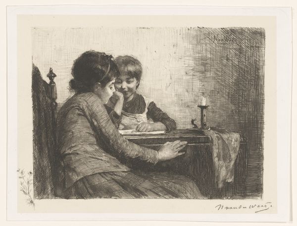 Jean-Louis Forain captures a scene with his drypoint etching "At the Restaurant". The image is a window into the social dynamics of late 19th-century Paris. Forain was known for his depictions of Parisian life, often focusing on the city's underbelly and the complex relationships between men and women in a rapidly changing society. Here, a well-dressed man and woman sit at a table, but the distance between them is palpable. The woman's gaze is averted, suggesting a sense of unease or disinterest. In contrast, the man appears self-assured, perhaps even complacent. This piece resonates with the era’s discussions around gender and class, capturing the nuances of power and desire. "At the Restaurant" invites us to consider the unspoken narratives within social interactions, reflecting on the position of women in Parisian society, and the often strained negotiations of identity and intimacy.