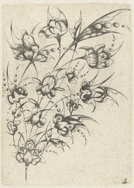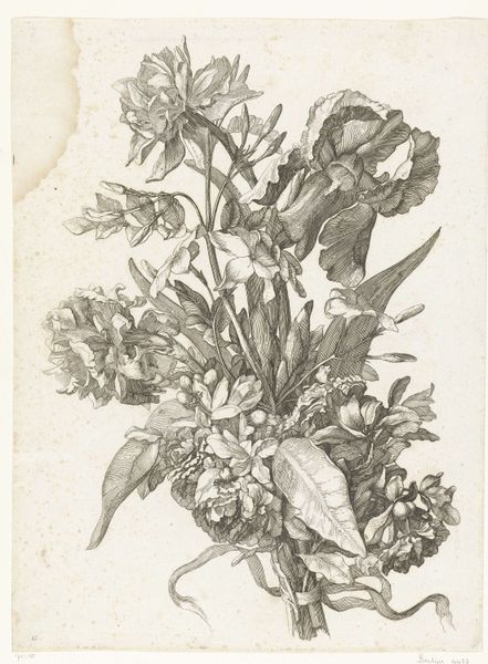 Editor: This print, "Flowers," was created in 1653 by an anonymous artist. It combines etching, engraving, and ink on what looks like laid paper. What strikes me is the meticulous detail, almost scientific in its approach, but what can we tell about the social value this had at the time? Curator: Well, during this period, botanical studies were increasingly valued, both for scientific understanding and for their aesthetic appeal. The meticulous detail wasn't just about accurate representation. Consider the burgeoning market for luxury goods. How do you think the precision of the lines, achieved through etching and engraving, might relate to broader cultural trends of the time? Editor: Hmm, maybe it was also a way to display knowledge and wealth, kind of like how people commissioned portraits. Were these types of prints seen as luxury items, then? Curator: Precisely! Think about the social circles that might have collected these images: wealthy merchants, aristocrats with an interest in the natural world, even physicians and apothecaries. These prints functioned as markers of status and intellectual curiosity. Also, we see growing urban centers. How do you think these depictions of flowers related to, perhaps, nature deprivation of the upper and middle classes? Editor: Interesting… So it was like bringing the garden indoors, a status symbol showing education and refinement amidst growing urbanization. A bit of curated nature. Curator: Exactly. And because this one is anonymous, it raises even more questions. Who was this print intended for, and how did its creators see their role in society? Editor: So much to consider. I appreciate you making me consider beyond just what it is and into its significance to the wider world. Curator: And you've helped me appreciate its role as a type of proto-photography for the middle and upper classes. Thank you.