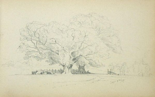 Editor: Here we have Benjamin Champney’s "Tree in a Landscape," sketched in 1859. It's a delicate pencil drawing, and I’m struck by its quiet simplicity. What do you see in this piece? Curator: I see this drawing as part of the 19th-century American landscape movement where artists depicted nature to reinforce ideas about national identity and westward expansion. How might this seemingly simple sketch play a part in that larger cultural project? Editor: I never thought about a simple tree being tied to something so large! Perhaps this intimate portrayal invited viewers to connect with and value the land. Curator: Exactly. These artworks were often displayed in public exhibitions and private homes, shaping how people perceived and related to the American landscape. It becomes more than just a tree, doesn’t it? Editor: It really does. It’s fascinating how art can reflect such broad cultural narratives. Curator: Indeed. And that even a seemingly simple sketch can participate in reinforcing certain social and political values of its time.