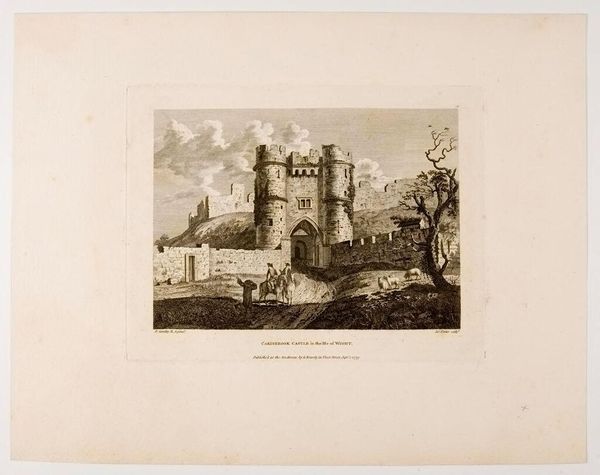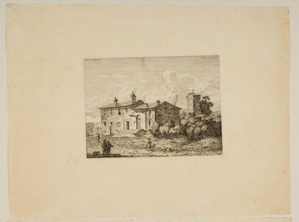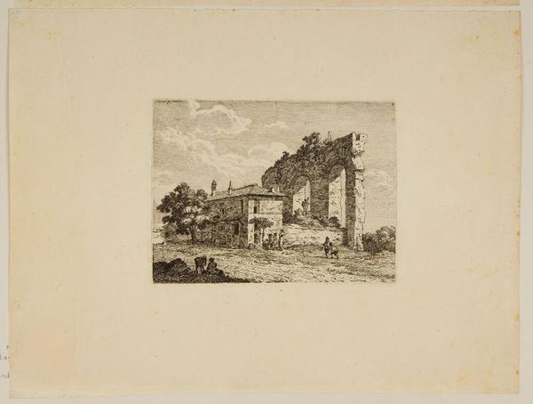 Editor: This is Bartolomeo Pinelli's "Church of S. Cosimato in Trastevere." It's a print, and the scene feels so alive, even though it's not a photograph! What's your take on this piece? Curator: It whispers stories, doesn’t it? Pinelli, bless his heart, was all about capturing the spirit of Rome. He wasn't just drawing buildings; he was painting a portrait of Roman life, gritty and real, with every line. Do you see the everyday folk milling about? Editor: Yes! It’s like a snapshot in time. A bit romantic, too. Curator: Absolutely. There's a touch of the romantic, but also a deep love for the everyday. He makes you feel the city’s pulse, doesn't he? A city layered with history and still breathing in his time. Editor: I hadn’t thought about it that way. Thanks for opening my eyes! Curator: My pleasure! It's all about seeing, feeling, and letting the art do its magic.