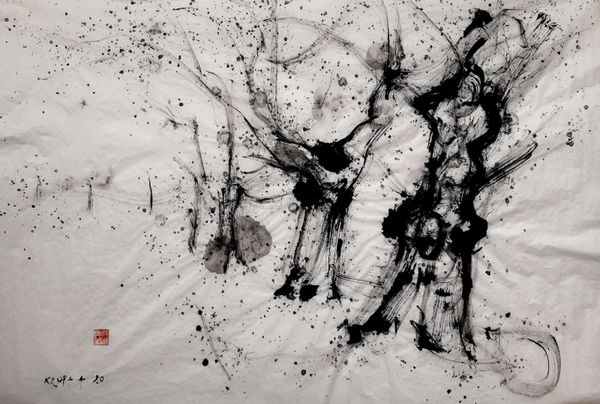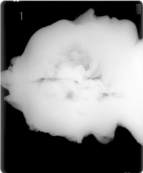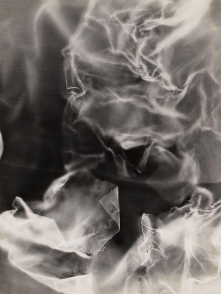 Editor: So, this is Anneliese Hager's "Veil Dance II," a gelatin silver print. It has a ghostly quality; the forms seem to float ethereally. What strikes you about its composition? Curator: The stark contrast is indeed striking, creating a dynamic interplay of light and shadow. Notice how the artist manipulates tone to define form; the undulating shapes are emphasized by the dark ground. What do you make of the tonal arrangement? Editor: It's almost like a dance, as the title suggests! The dark background makes the lighter forms feel weightless and active. What does this remind you of? Curator: I appreciate your connection to the title. This interplay of form and light reminds me of semiotic systems; the forms are like signifiers, their meaning derived from their relationship to each other and the dark void. Editor: That's a great way to look at it. I'll definitely consider that next time I'm analyzing a work. Curator: Indeed, by considering the formal components, we enrich our understanding and allow new meaning to be revealed.
