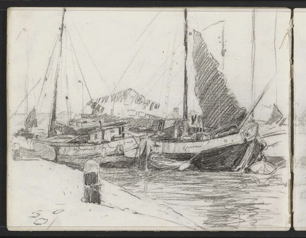 Hendrik Abraham Klinkhamer made this pencil drawing of a Zeilschip met sloep langszij. During the 19th century, the Netherlands underwent significant transformations, including advancements in maritime technology and the expansion of global trade. The cultural perception of seafaring shifted, with maritime scenes becoming a source of national pride. The drawing captures the essence of maritime life and the Dutch identity of that period. The ships symbolize both adventure and economic opportunity, reflecting the Netherlands' historical dominance in maritime trade. Klinkhamer, through his artistic lens, captures the interplay between man, machine, and the natural world. The soft pencil strokes evoke a sense of quiet contemplation. The drawing prompts us to reflect on the Netherlands' complex relationship with the sea. It serves as a reminder of the cultural and economic forces that have shaped the nation's identity, inviting us to engage with the historical narratives embedded within the artwork.