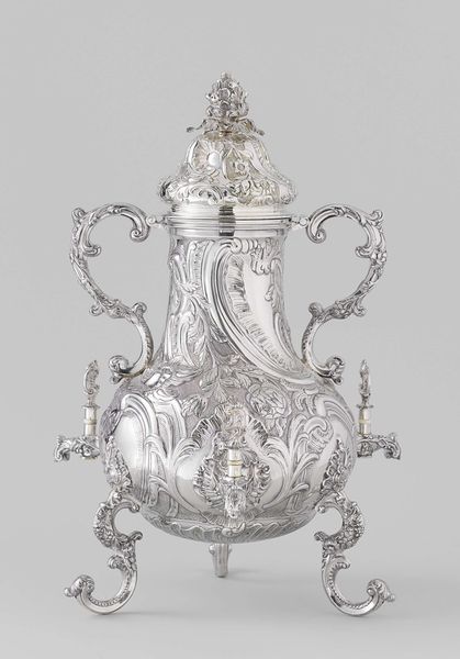 This is a silver coffee pot with a baluster shape and three spouts, crafted by Christiaan Warenberg, who lived between 1667 and 1747. Think about the Dutch in the 17th and 18th centuries, a time when the Netherlands was a major player in global trade. Silver objects like this weren't just functional items, they were potent symbols of wealth and status. Coffee itself, once a rare and exotic commodity, became increasingly popular among the elite. Consider, too, the legacy of colonialism inextricably linked to this luxurious coffee pot. The coffee it once held was likely harvested by enslaved people in distant lands, so this object is both beautiful and deeply implicated in the history of exploitation. What stories might this coffee pot tell if it could speak? Of intimate gatherings, hushed conversations, and the silent labor upon which its beauty was built.