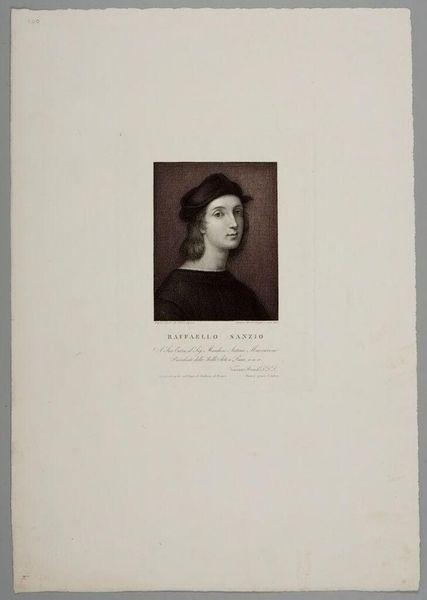 Editor: This is François Forster's "Raphael Sanzio" at the Harvard Art Museums. The precision of the engraving is striking. As a copy of another artwork, what purpose would this portrait have served at the time? Curator: Engravings like this allowed wider access to images of famous artists, like a form of early art dissemination through prints. How do you think these images shaped public perception of artists like Raphael? Editor: It's like creating a brand for artists! So, the distribution of this portrait would shape Raphael's legacy and artistic persona across different audiences. Curator: Exactly! It democratized art, but also controlled the narrative, making it a powerful tool in shaping cultural values and artistic canons. A fascinating tension, don't you think? Editor: Definitely, I hadn't considered the politics inherent in distributing images of artists themselves. Thanks!
