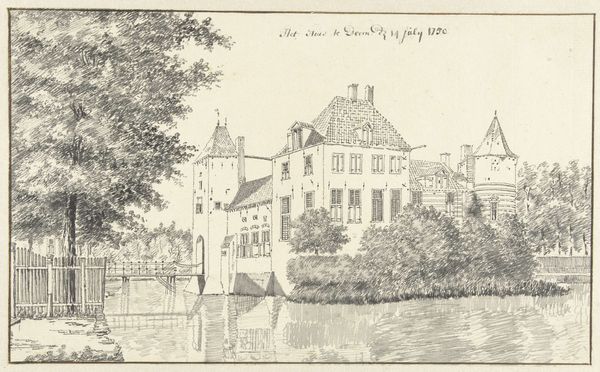 Curator: Welcome. We’re standing before Augustus Wijnantz’s "View of the Westerkerk and Westerhal in Amsterdam," a pencil drawing from 1835. What’s the first thing that strikes you? Editor: It’s remarkably serene, almost hushed. The gray palette certainly contributes to that, but it's also in the precise details—the stillness of the water mirroring the buildings feels almost reverential. Curator: Precisely! Amsterdam in the 1830s was a city steeped in history, still embracing Neoclassicism, evident in the clean lines and formal arrangement of the scene. The Westerkerk, dominating the skyline, represented not only religious authority but civic pride. Editor: I am always interested in where our eyes are directed, and here it seems our gaze is pointed to this church for a good reason, as this church is filled with interesting symbolisms... and what’s truly interesting about it, I find, is how those buildings almost look like giant faces looking over the streets. Curator: Oh, I love that! Giant, watchful faces. That sense of protection, but also judgment, permeates the composition. The Westerhal, while smaller, complements the Westerkerk, embodying civic administration—governance, perhaps? Editor: The reflections, those hazy replicas in the water, definitely echo more than architectural form. Those could be symbolic of an idealized image of the city itself. Curator: Absolutely. Wijnantz offers more than a cityscape, really. I wonder, what were his intentions and views when making this work, what could be reflected through the image-making, as that time realism was already a thing? What I feel here is how all of the symbolic, as the old engraving style that is so subtle, allows for realism to enter the frame as a powerful statement, like showing, "I see you". Editor: I like how you connected that. Maybe what Wijnantz saw of Amsterdam is both a testament to and an act of faith. Seeing it is not just portraying a reality, but imbuing it with cultural meaning. Curator: A lens, not just a mirror. Well said. Looking again, I wonder if this artwork allows for such readings because it almost feels like it transcends style itself, or maybe uses them for a purpose, like many artists do...