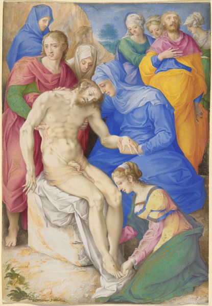 Palma il Giovane painted this Lamentation sometime in the late 16th or early 17th century, likely in Venice, Italy. Lamentation scenes were a staple of Venetian art, and this one is no exception. It shows the dead Christ surrounded by mourning figures: Mary Magdalene, the Virgin Mary, and other holy figures. In Venice, at this time, art had a very public role. Paintings were not just for private enjoyment, but they served a social function, reinforcing religious beliefs and social hierarchies. Religious confraternities or wealthy patrons often commissioned artworks like this for churches or public spaces to demonstrate their piety and status. To better understand this work, we might delve into the archives of Venetian religious institutions or the records of Palma’s patrons. This kind of research illuminates the social conditions that shaped artistic production in Venice at the time. Art, in this view, isn’t made in a vacuum; it is contingent on its social and institutional context.