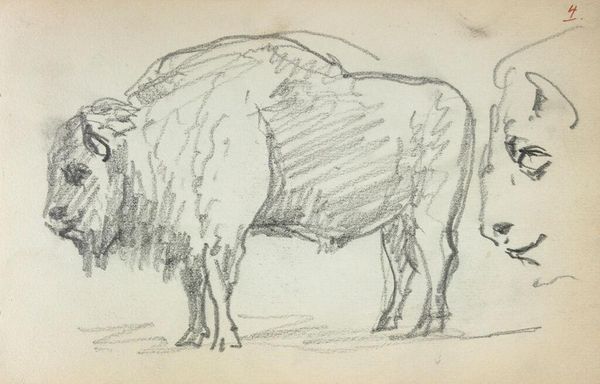 Willem Cornelis Rip made this drawing, "Grazende Schapen," using ink on paper. The drawing offers a glimpse into the artist's observational skills, capturing the essence of grazing sheep through the economy of line and form. Notice the varying degrees of completion and detail across the sheep, ranging from mere outlines to more developed figures shaded with dense, cross-hatched strokes that evoke their woolly texture. This suggests a study in progress, where the artist experiments with capturing light and volume. Rip’s strategic use of shading and perspective, particularly in the central figure, creates a focal point drawing the eye and anchoring the composition. The open space around the sheep allows each figure to breathe, highlighting the interplay between positive and negative space as a key element. The sketch destabilizes the traditional idea of a finished artwork, inviting viewers to appreciate the artistic process. It reminds us that art is not just about the end product but also the journey of seeing, interpreting, and representing the world.
