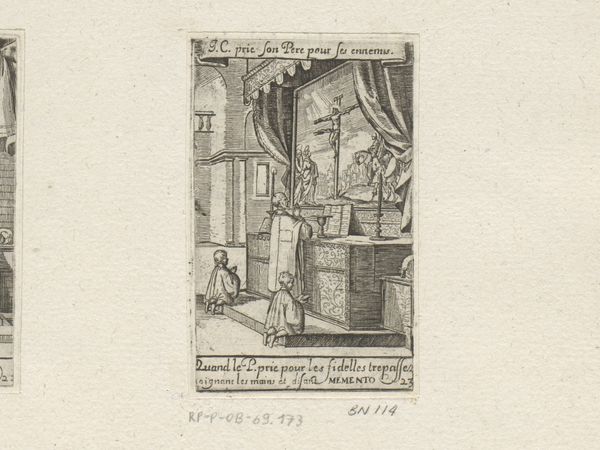 Curator: This engraving, rendered by Marcantonio Raimondi between 1495 and 1539, presents a "Modern impression of the Adoration of the Magi who approach the Christ Child held by the Virgin." Editor: There's a somber elegance to the scene despite its overt religious narrative. The depth and detailing draw you in. Curator: Indeed. Raimondi, heavily influenced by Raphael, masterfully captures architectural precision. Observe how he integrates the biblical narrative within a very deliberate space. Editor: The prominence of the archways… They remind me of triumphal arches and perhaps are meant to convey Mary as victorious, pure, a worthy vessel. And the angel with his wings… It is more forceful, active. It brings the central moment to the eye. Curator: Good point. That choice in depicting her aligns with the Humanist movement gaining momentum during the Italian Renaissance. Artists increasingly aimed to give Mary an individualized, almost contemporary presence to amplify her influence. Editor: It is such a common narrative, but even in an early modern impression the weight of the moment is captured. Consider, even, the placement of objects... their strategic placement directs the gaze and informs our emotions. Curator: Absolutely. Moreover, Raimondi’s engravings played a pivotal role in disseminating Renaissance art across Europe. This piece shows the growth of printmaking during that time in the way it distributes popular themes. It becomes both sacred art and a commodity for popular culture. Editor: This engraving prompts questions about how faith, visual language, and artistic ingenuity intersected during the Renaissance. A quiet statement of artistry in its own right. Curator: Exactly. And its journey through time reminds us how certain visual archetypes continually reshape our perceptions of the sacred.