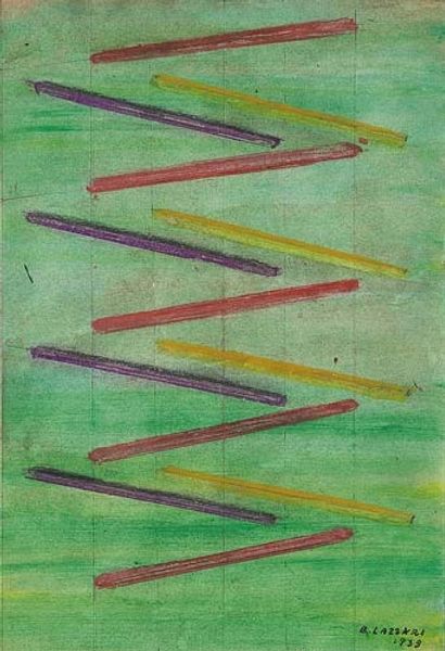 Editor: This acrylic painting, titled "Design," is an interesting pattern by Sonia Delaunay, apparently used for textile design. It's visually striking, almost dizzying with its interconnected circles of primary colours. What do you see in this piece, especially considering her use of geometric abstraction? Curator: It’s a fascinating study in the dynamic possibilities of purely formal elements. Observe how the shapes—primarily circles—interact. Delaunay's composition isn't about representing anything; instead, it explores rhythm, movement, and colour relationships. Notice the black background. What effect does that have on your reading? Editor: It makes the bright colors pop, they contrast greatly. But I also feel a sense of depth even though it's flat, especially where the circles overlap. Curator: Precisely. This layering creates visual tension and depth. She focuses on how we, as viewers, perceive spatial relationships and movement based on these arrangements. What would you say about the role of white lines present on the background? Editor: Those almost act as disruptors or connectors...they aren't circles, but add another element. They add rhythm and even imply further connections, outside of what we can see. Curator: Yes, the dynamism emerges not just from colour contrasts, but from the shapes, overlaps, and continuations created by the negative space. Editor: I never would have thought about negative space in that context. I appreciate how formal analysis forces us to really observe and understand the relationships between different parts. Curator: Indeed. Delaunay proves that geometric abstraction isn’t merely about shapes; it's about experience itself through pure form. The shapes are a starting point, not the subject.