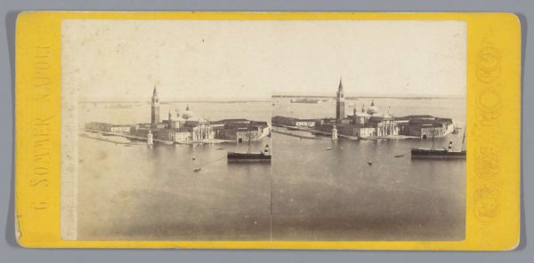 This is a stereoscopic photograph titled 'Gezicht op de Arno te Pisa' by Giovanni Brampton Philpot. It presents a view of the Arno River in Pisa. The subdued tones create a sense of distance. The composition is structured around the horizontal axis of the river and the buildings. Note how the dual image attempts to mimic depth, drawing our eyes to the architecture. The bridge acts as a mediating structure between the water and the buildings. The image uses architectural details to engage with the semiotics of urban space and cultural identity. Philpot captures the essence of Pisa through its architectural and natural forms. The photograph offers a structured view, inviting us to consider the historical and cultural narratives embedded within the urban landscape. Remember, what we see is not just a visual record but a constructed representation of a place.