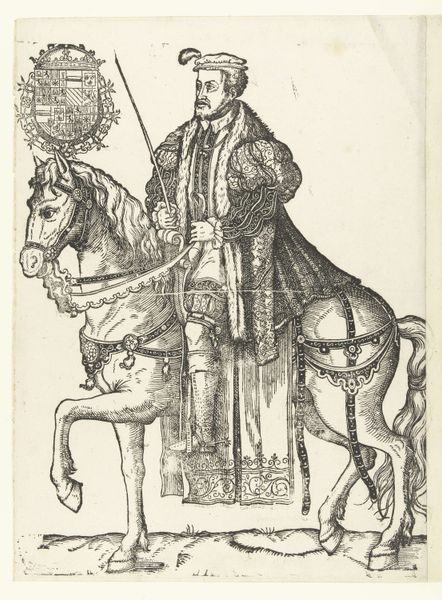 Cornelis Anthonisz. created this colored woodcut of Philip of Lalaing in the Netherlands sometime in the first half of the 16th century. But what does it tell us about the subject and the world he inhabited? Portraits of the wealthy and powerful – particularly on horseback – were a common status symbol during the Renaissance. The image broadcasts the sitter's place in the social hierarchy. Lalaing's garments of fur and velvet signal his aristocratic status, reinforced by the family crest displayed in the upper right corner of the print. Equestrian portraits have a long history going back to antiquity, and were often associated with military leadership. However, portraits like this aren't just neutral records. They actively construct a certain image for public consumption. To understand the social function of this portrait, historians might examine estate records, letters, and other documents that shed light on Lalaing's life and times, as well as the artist's other works. This reveals how art is deeply embedded in the social structures of its time.