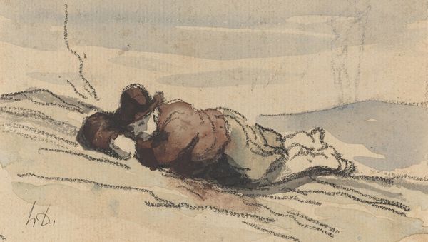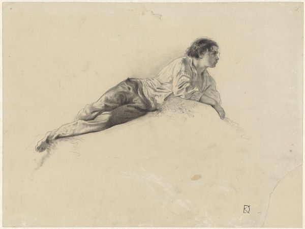Guillaume Anne van der Brugghen captured this image of a prone man with oil on paper. Note how the subject is grounded, lying flat with his gaze fixed downward. His humble posture, his connection to the earth, is further emphasized by the staff he holds—a visual echo of the shepherd's crook. This motif transcends time. We recall ancient depictions of hermits or wanderers, their staffs symbolizing guidance and support on life’s journey. Yet, unlike the shepherd guiding his flock, this man appears lost, disconnected. The image subtly echoes the classical figure of the reclining river god, a symbol of the life-giving forces of nature. However, here the vitality is absent, replaced by a sense of weariness. It is as if the life force has been depleted. Consider the power of this downward gaze. Psychologically, it suggests introspection, a turning inward. It is a posture we recognize, a universal expression of contemplation, sorrow, or perhaps, simply, exhaustion. The symbol evolves, reshapes, and resurfaces, echoing through the corridors of time, each iteration layered with new meaning.