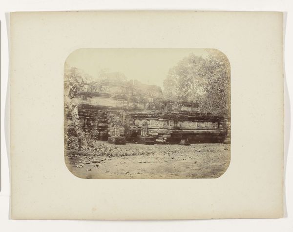 Curator: Here we have Herman Salzwedel's gelatin-silver print, "Een kruispunt in Surabaya," dating from between 1876 and 1884. Editor: It’s incredibly evocative! All that muted sepia... immediately makes me think of heat shimmering off a road, of colonial narratives and the slightly alien beauty of another world. Curator: Indeed. This image captures a bustling intersection in Surabaya during the Dutch colonial period, a crucial juncture for understanding the complexities of Orientalism and the photographic gaze. Salzwedel’s work offers a glimpse into the constructed vision of the East propagated during that era. How does it strike you beyond that initial sensory impression? Editor: Well, there’s a melancholy feel, too. Like peering into a memory that’s both beautiful and shadowed by unspoken truths. The long road receding into the distance—it pulls you in but keeps you at a remove. I wonder about the stories of those people, framed so neatly, unknowingly, within this imported perspective. Curator: Exactly! And thinking about the tonal qualities you observed earlier: Salzwedel’s composition and use of light are deliberate. He’s creating an exoticised space, performing empire for a European audience, whilst subtly othering its inhabitants within a constructed image of place. This work becomes an active player in maintaining certain socio-political orders, right? Editor: Absolutely. And as a contemporary viewer, you are inevitably implicated as well. The photo makes you consider: who is doing the seeing? What are you being asked to believe? Curator: This photo invites contemplation about the ethics of representation itself, even across such vast gulfs of time. It serves as a powerful reminder to critique the power dynamics embedded in visual culture and our role in perpetuating or dismantling such narratives. Editor: Leaving me to ponder how those historical visual echoes resonate, maybe uncomfortably, in the present.