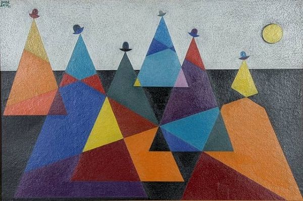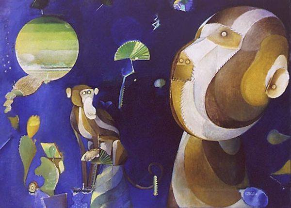Sven Jonson painted 'The Return' in an unknown year using a layering technique to capture a dreamlike scene. The cool blues and greys give it a melancholic feel, like a memory fading at the edges. It's as if he was trying to pin down something just out of reach. Look at the paint itself. It's thin and translucent in places, almost like watercolor, allowing previous layers to peek through, creating depth and subtle shifts in color. See how the geometric shapes intersect with the softer, more organic forms of the landscape and parachutes? I find the shapes create an interesting tension. This pushes the image away from straightforward representation, and into the realm of feeling and sensation, reminding me of Giorgio de Chirico’s dreamscapes. Ultimately, 'The Return' isn't about answers, but about embracing the questions and uncertainties that make art so compelling.