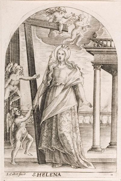 Curator: This piece is attributed to Albrecht Dürer, titled "One of the wise virgins", and it's dated 1493. Executed in pen and ink on paper, it exemplifies the Northern Renaissance style. Editor: She gives off a strange melancholy, doesn't she? All those swirling lines forming the hair, that downturned gaze… like she’s lost something important, or knows something you don't. Curator: Indeed, the visual elements are compelling. Note how Dürer uses hatching and cross-hatching to create a remarkable sense of volume and texture. The delicate linework defines her drapery and hair, almost conveying movement and depth. Editor: It’s all incredibly detailed. Look at the rendering of the folds in her garments – masterful! Yet there's something almost dreamlike about her. Is it the slight asymmetry? Or maybe it’s the faint light emanating from her candle? I mean, she has the air of someone wandering between worlds. Curator: Perhaps the slightly off-kilter symmetry contributes to the expressiveness. Consider, too, the allegorical weight. As one of the wise virgins from the biblical parable, she represents preparedness and vigilance. This is communicated through the symbol of the lamp, and through the controlled execution that conveys clarity. Editor: Oh, I see the biblical angle now – so it is more than a sketch. But the human element trumps the religious. Doesn't she look anxious, in a very human, relatable way? Waiting, hoping, and also kinda scared she’s made the wrong choice, that maybe her lantern’s going to run out of oil any second now. Curator: Her gaze is directed downwards, imbuing the composition with a sense of humility, which aligns with religious ideals of the time. Editor: I wonder what Durer was really after... portrait or symbol? Because you see, this isn’t just a woman with a lamp, this is all of us caught at dawn. A beautiful mess rendered in light and shadow. Curator: Yes, Dürer was capable of distilling an incredible psychological insight with seemingly effortless command of technique. Editor: He has really nailed the look of profound introspection. Thank you for enlightening me on the artistic method.