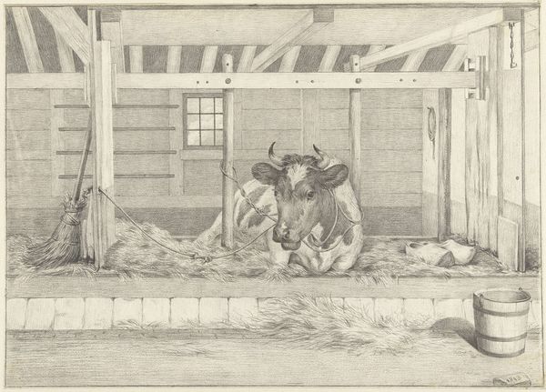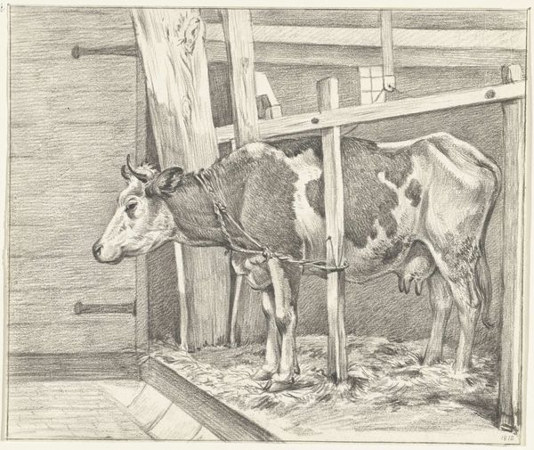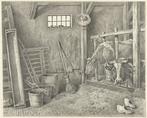 Jean Bernard made this drawing of a standing cow with a blanket, sometime in the late 18th or early 19th century. It’s made with graphite on paper, humble materials, but employed with extraordinary skill. Look closely, and you can see how the artist built up the image, stroke by stroke. The direction and density of the lines define the forms, from the cylindrical barrels in the loft to the soft bulk of the animal. This painstaking technique, known as hatching, was common practice in printmaking, and Bernard was indeed a graphic artist. The drawing has the quality of an engraving in its precision and clarity. Notice the way the cow seems to fill the space, a powerful presence rendered with patience and care. We can appreciate the labor involved, not only in the daily work of farming, but also in the artist's quiet act of observation and translation. The level of attention elevates the subject, transforming the everyday into something worthy of contemplation. It reminds us to look closely at the world around us.