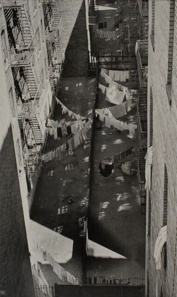 David Vestal made this photograph from his back window at 133 West 22nd Street in New York, using light and shadow to carve out depth. It's a study in contrasts, isn't it? Look at how Vestal orchestrates light and form, particularly the fire escape's skeletal structure against the dense brick. Notice that high contrast, that gritty texture? It's not just about the subject, but how the light interacts with the surfaces, transforming the mundane into a dramatic composition. The geometric precision juxtaposed with the organic chaos of the city—it’s like a visual argument. It reminds me a bit of László Moholy-Nagy, who also experimented with photography and abstraction. Like Moholy-Nagy, Vestal challenges us to see the world from unexpected angles, finding beauty in the overlooked. Art is, after all, about seeing and feeling, not just knowing.