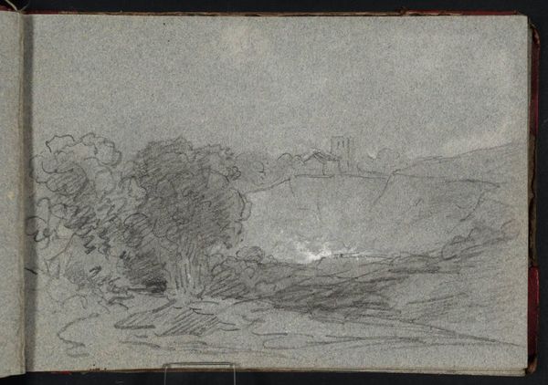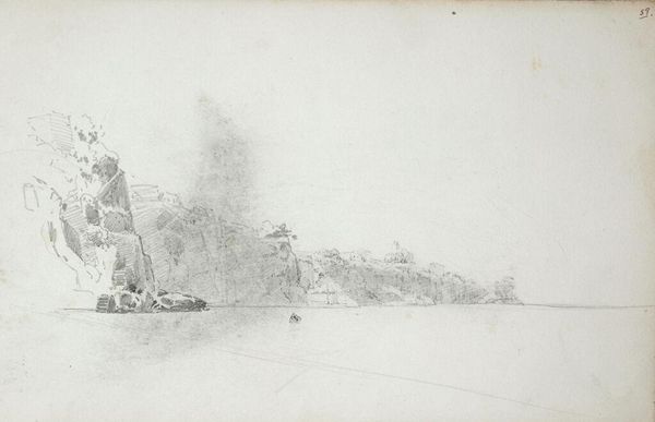 Editor: This pencil drawing is titled "View of the Barents Sea with Icebergs" by Louis Apol, created around 1880. I’m struck by how minimal it is, almost stark. The subtle gradations of the pencil on the paper really convey the icy environment. What are your thoughts, what do you see in this piece? Curator: Indeed. Notice the artist's use of line and tone. The varying pressure of the pencil creates a depth that belies the simple composition. The horizontal orientation reinforces the vastness of the Arctic landscape, doesn't it? Consider also, the interplay between the texture of the paper and the pencil strokes; this lends a tactile quality. It evokes the coldness through purely visual means. Editor: So you're saying it's more about how he uses the pencil, the lines and the gray tone, than the icebergs themselves? Curator: Precisely. The subject matter is merely a vehicle. It's about the formal relationships at play. The subtle gradations are crucial, indicating shifts in plane and volume in the ice formations. Do you perceive how the artist masterfully guides your eye across the otherwise undifferentiated gray ground? Editor: I think so, yes. It is kind of amazing how such a simple sketch can give such a strong feeling. The lack of detail somehow makes it feel bigger. Curator: And further, that very restraint elevates it, detaching it from simple representation to enter a realm of pure visual form. The sketch almost embodies the idea of sublime nothingness through simple contrasts of light and dark. Editor: That's a helpful way of looking at it. I initially saw a cold landscape but now I appreciate the more abstract qualities, the arrangement of shapes, and how the artist directs the eye using only tonal shifts and lines. Curator: Yes. Art can be viewed as simply the study of form for form's sake.
