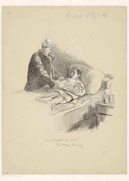 Jean-Louis Forain made this lithograph, Elections Municipales, commenting on the social landscape of late 19th-century France. It depicts a man, presumably a political canvasser, visiting a woman in bed. The caption translates to "Well, my good man, you visit me in such a state! Oh, but my committee carried me away in triumph last night!" This image offers a sharp critique of the political machinery at the time. Forain was a keen observer of Parisian life, using his art to satirize the bourgeoisie and political corruption that marked the era. His work often appeared in newspapers, making it very accessible. The scene hints at the frenzied, even absurd, nature of political campaigning, where the health and well-being of individuals are secondary to the cause. To fully understand Forain's commentary, we might delve into the history of municipal elections in France and study the role of political committees. Art becomes a historical document, reflecting the social conditions and power dynamics of its time. The meaning of this art is contingent on this social and institutional context.