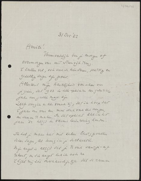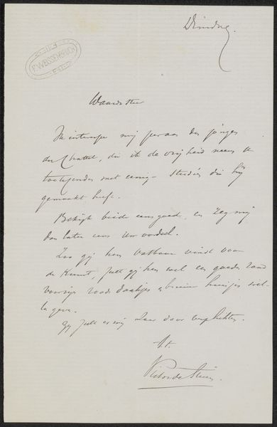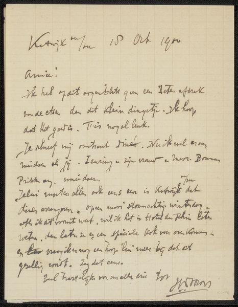 This is a letter, handwritten by Jan Toorop to Philip Zilcken. While undated, this piece provides an intimate glimpse into the social circles of artists at the time. Letters such as these reveal the everyday negotiations of life, layered with the nuances of friendship and professional relationships. We see the artist's personality through his handwriting and word choice. He suggests alternative arrangements for a meeting and there is a sense of flexibility, as he says, "I can very badly change, otherwise I would certainly do it." Toorop's words evoke a sense of intimacy and a connection to a specific moment in time, inviting us to reflect on the way personal interactions shape the art world. By looking at this letter, we consider how these dialogues play a role in the creation and reception of art.
