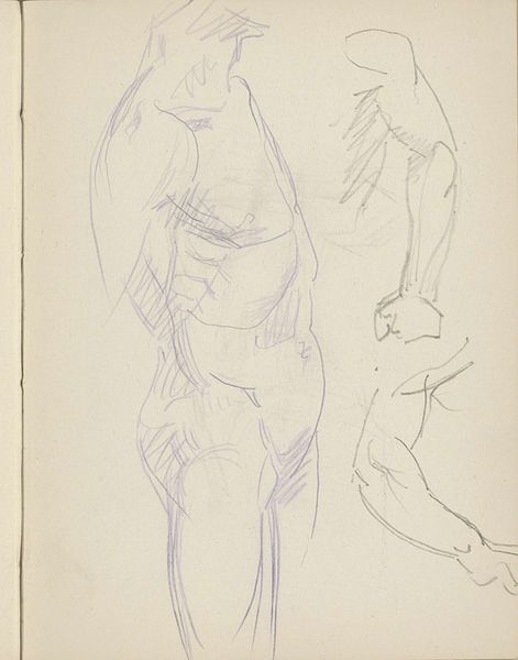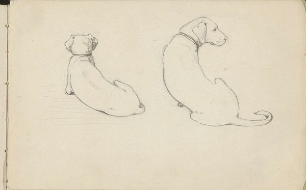 Curator: Ah, here we have a sketch titled "Drie zittende beren," or "Three Seated Bears," dating from sometime between 1906 and 1945, currently held here at the Rijksmuseum. It’s rendered in pencil on paper. What's your first impression? Editor: Whimsical! They're so...squishy looking. Like they're made of soft clay and someone gave them a gentle pat. I love the light pencil work; it’s so tentative. Makes me want to pick up a pencil myself and see what wobbly creatures I can conjure. Curator: Absolutely, it has a delightful informality. This sketch offers a glimpse into the artist’s creative process. The sketch quality gives it a rawness you rarely see in finished works. These are bears captured in a moment of exploration, perhaps a personal sketchbook study? Editor: Precisely. And the toned paper adds to the sense of intimacy, like discovering a secret kept for decades. It feels very different from a formal painting, more immediate and direct. I imagine the artist pausing, observing, then quickly sketching their interpretation. Curator: Yes, that quality is very important when thinking about this piece. One gets a feel for not only what’s drawn but also for the kind of hand movements, maybe the overall mood, of the artist sketching them. How the act of sketching perhaps provides insight into something more than the bears as images. Editor: It certainly brings up the public's fascination with sketches as artworks unto themselves. How often do we consider an artwork like this when thinking about what gets included in museums? What makes it “complete” or worthy of exhibition? This seems so personal. Curator: These are excellent questions! Museums must negotiate questions of intent. Is it a complete idea, even if rendered quickly and intimately? I would wager that by acquiring something so obviously from a sketchbook, museums expand their idea of “the artwork.” Editor: Definitely something to mull over! It’s a lovely little piece, one that speaks volumes about artistic experimentation. Curator: Indeed. A beautiful example of how a simple sketch can spark such thought and fascination.