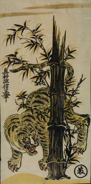 Curator: Here we have Utagawa Hiroshige’s "Golden Pheasant and Fern Shoots," residing here at the Harvard Art Museums. Editor: It feels very compressed, almost claustrophobic. The pheasant’s plumage is gorgeous, but it’s also overwhelming in the small space. Curator: The pheasant becomes symbolic, then, perhaps of the pressures of visibility and performance within its own constrained environment. Editor: Indeed. The bird, traditionally a symbol of beauty and good fortune, seems almost trapped by the fern shoots and confined to the picture plane. I wonder if the gourd represents longevity, a quiet wish amidst these circumstances? Curator: Interesting. Seen this way, the piece offers a commentary on the social expectations placed upon idealized figures, even within the natural world. Editor: It’s a poignant tension between vibrancy and confinement. Curator: Yes, and one that makes this particular representation all the more resonant, I think.